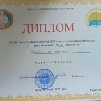 Оқушылардың Қазақстан тарихы пәніне қызығушылығын арттырып, шығармашылық қабілеттерін айқындау және дамыту мақсатында өткізілген КСРО білім беру ісінің үздігі С. Нұртаев атындағы 9-сынып оқушыларына арналған Республикалық олимпиадада жүлделі ІІ орын алған ЕРБОЛҚЫЗЫ НҰРАЙ , жетекшісі: Усейнова Гүлнар.